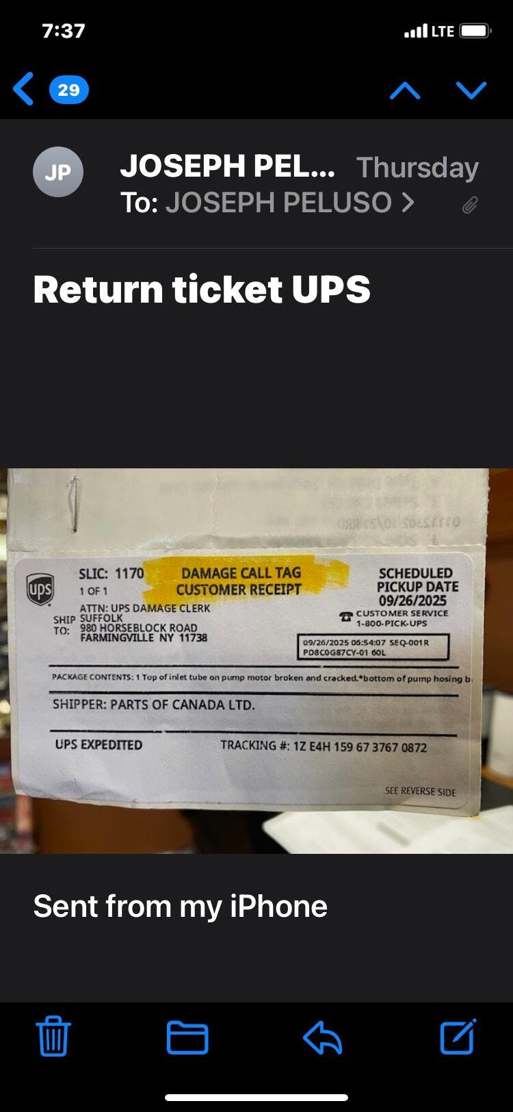 Part came in Broken I want a credit for full amount .Not even an Email stating You are